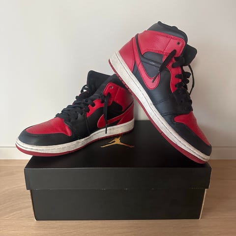 Sneakers, Nike Air Jordan 1 mid, i sort/rød.