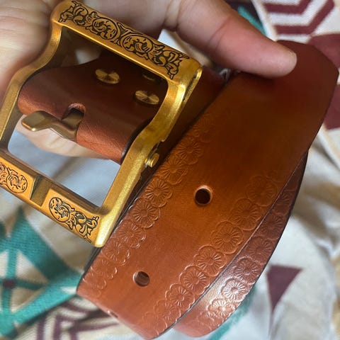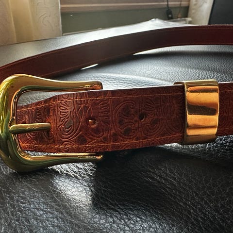 Vintage Håndlaget Skinnbelte med en sjelden mynt fra España 1966
