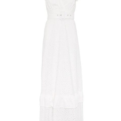 Nydelig kjole i gull som legger seg fint og har et flatterende belte i midjen.