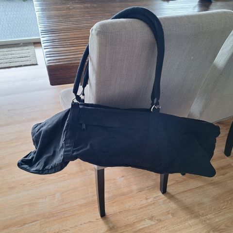Brun, helt nye yogabag, laget i India, 100% bomull. Praktisk lomme på innsiden, lukkes på korte enden med snor. Blomsterbroding på utsiden.