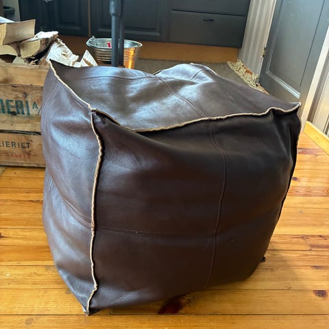 Helt ny Santos pall 90 x 90 x 40 i mørk brun ecohud selges til under halv pris. Ny pris er kr. 6.340,-