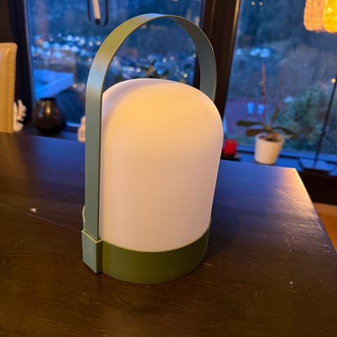 Cestita Alubat bordlampe fra Santa & Cole i grønn.