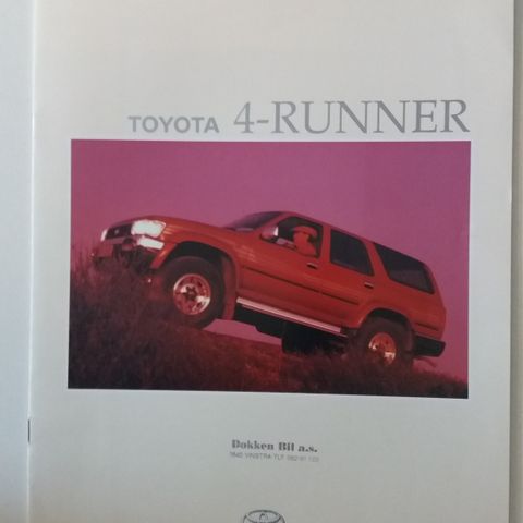 Toyota 4 Runner brosjyre selges kr 300,- inklusiv porto