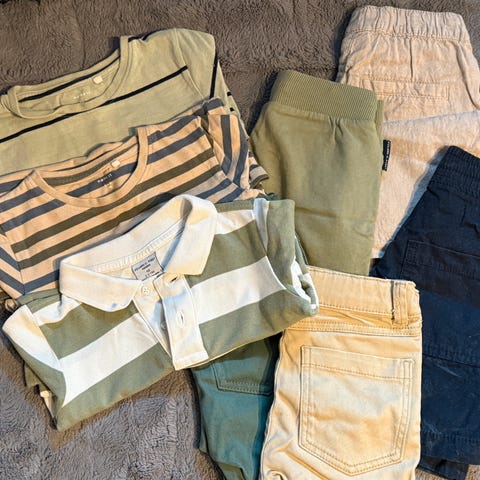 Størrelse 98 og 104. Noe nytt og noe pent brukt.