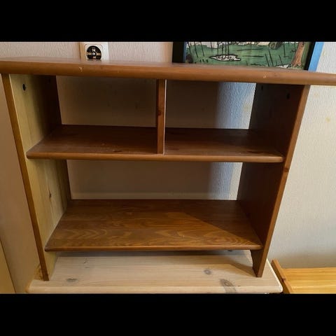 Hylle i solid tre gis bort mot henting. Førstemann som henter får den.