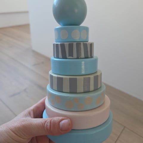 Ny og ubrukt tre rangle for baby, som lager lyd ved risting. Ingen feil, ble funnet og trengs ikke her mer😂 Lik som vist på ett av bildene, men uten maling/ farger. Kan hentes i Stavanger eller sendes