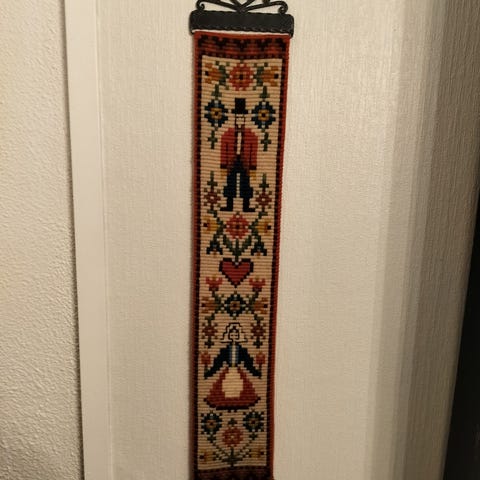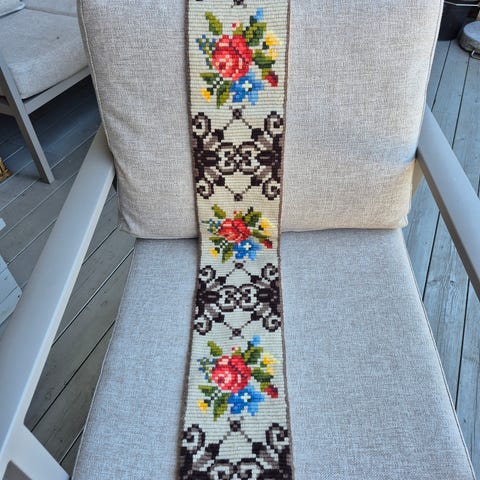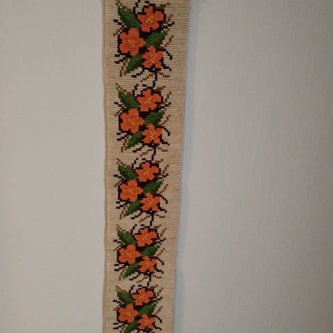 Selger en flott gammel klokkestreng i nydelige fargenyanser. Flott håndarbeid utført i ulltråd.
