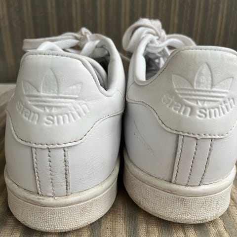 Stan Smith sample med boostet såle, i størrelse 42.5. Meget komfortabel å gå med.