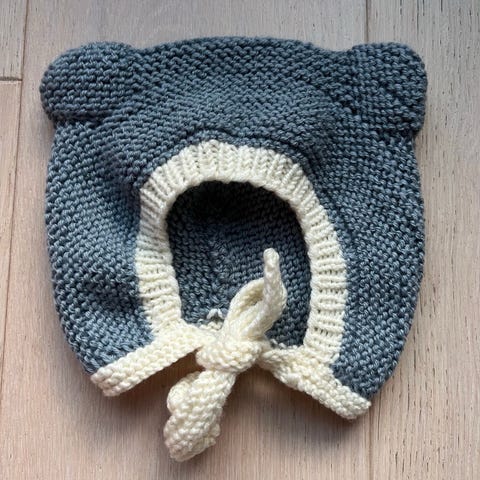 Hjemmestrikket Lillebjørnlue og uværslue.