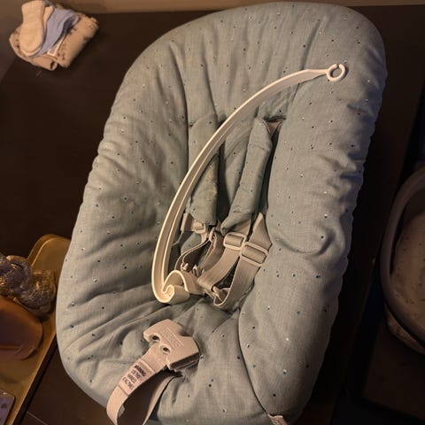Selger pent brukt Stokke tripp trapp newborn seat, følger også med et trekk til stolen som er vasket før salg.