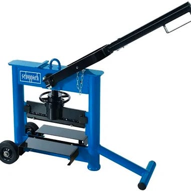 Leier ut steinsaks til å klippe vanlig belegningsstein. Ikke egnet til store betongheller.