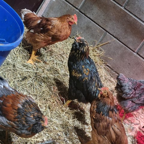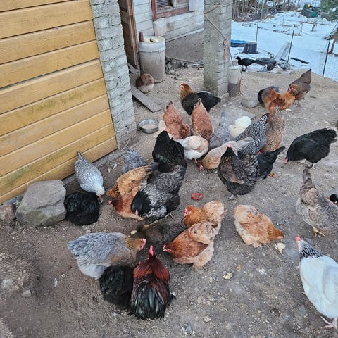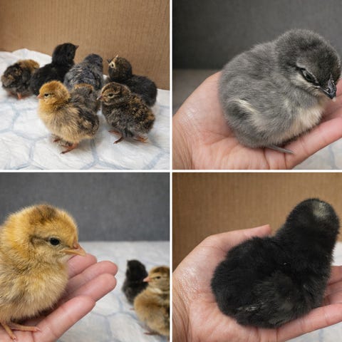 Nyklekkede kyllinger fra fargerike egg. De er mix av bla.a plymouth rock,faverolle, sussex, rir og creme legbar. De koster 100 pr.stk + 10 pr.uke tlf,41249640