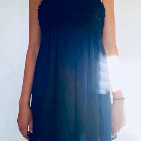 Selger en nesten ny stroppløs sommerkjole i mørkeblå farge. Er kun brukt et par ganger.
