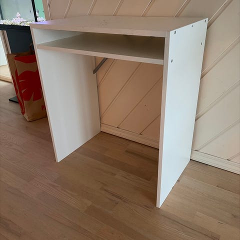 Bordplaten har noen riper da den ble brukt til arbeid.