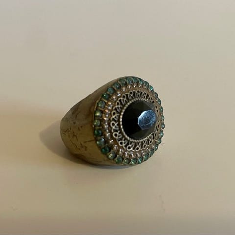 Sølvring med svarte og hvite steiner