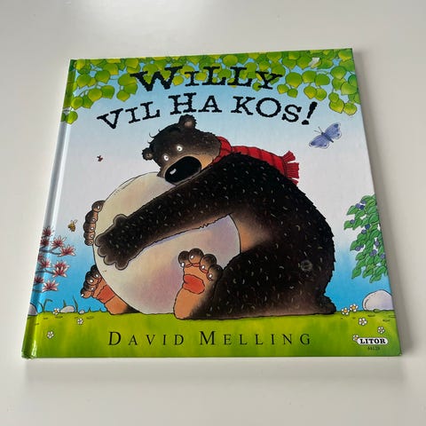 Hvert av de fargerike oppslagene har ulike teksturer som barna kan føle på. denne er i liten kartonert utgave.