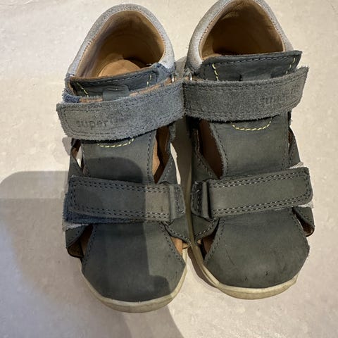 Selger sandaler fra superfit , er brukt 4 ganger da de var for små, når vi fant de etter flyttekaos. Merke på sandalen etter navnelapp se bilde( tar man navnelapp på der så er det vekke). Kjøpt ny til 799.