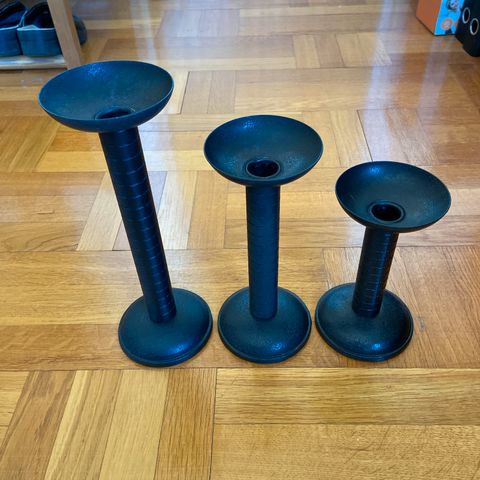 Selger disse helt ubrukte lysestakene i sort .