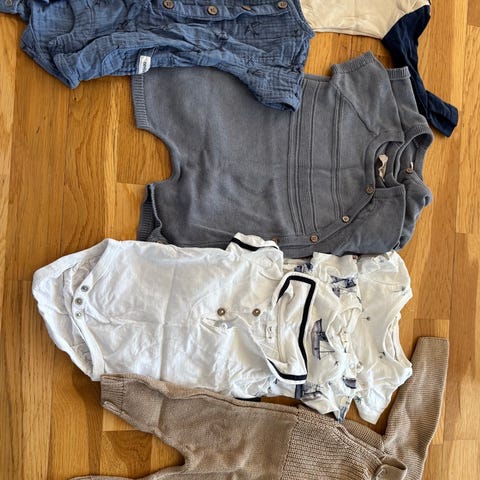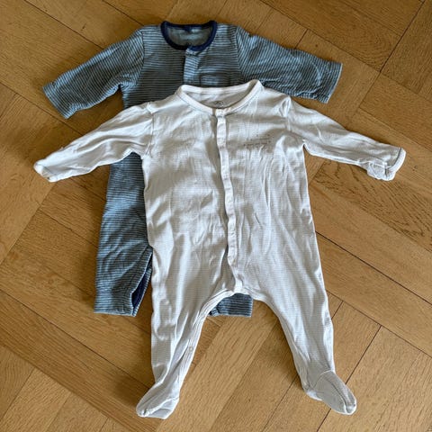 To bodyer, 1 sparkedrakt sommer med båter på (korte ermer og ben) og pysj selges.