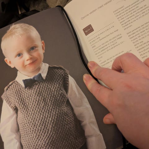 Ny håndlaget strikket vest størrelse se på bildene. ( lengde 41 cm, bredde 38 cm) Strikket med resten garn Fritids garn Sadnes garn 100% ull.