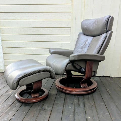 Stressless Prince i skinn med brun farge. Stolen har en komfortabel design med justerbar rygg og armlener. Perfekt for avslapning i stuen eller lesekroken. Laget av slitesterkt skinn som gir langvarig bruk.