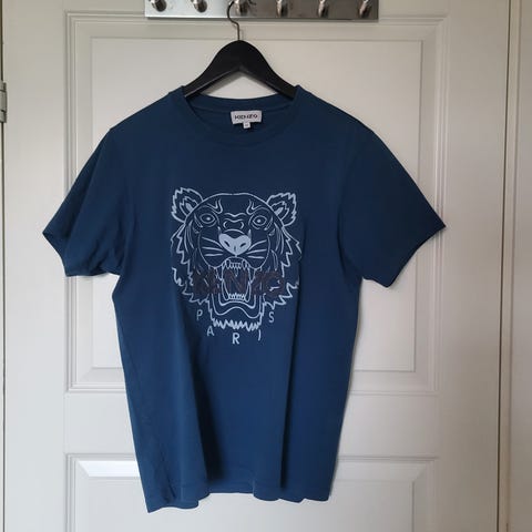 Ekte varer! Kenzo t-shirt, farge grå, størrelse L. Fått i gave (dessverre for smått til meg, var kjøpt hos Høyer med de bytter ikke uten kvittering.). Bare prøvet på 1 gang. Nypris NOK 1.799