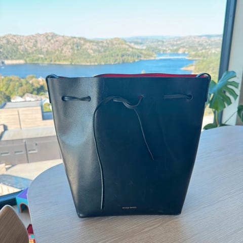 Mansur Gavriel mini leather bucket bag. Mykt kalveskinn i rosa/gammelrosa farge. Pent brukt, men har litt slitasje på kantene i bunnen. Dustbag følger med. Høyde: 20 cm, bredde: 20 cm, dybde 10 cm.