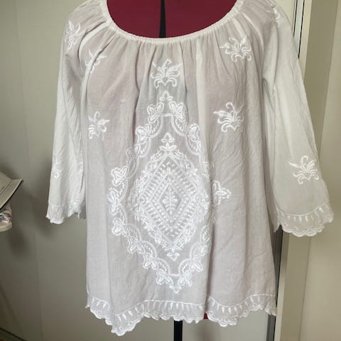 Stilig og elegant. Brukt kun 1 gang tunika av 100% silke med broderier fra Monsoon str.46 (passer både str.M og L)
