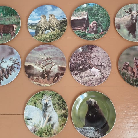 Da selger jeg disse Askebeger fra Tiedemanns Tobakk. Dette er Fauna serie Nr. 4. Signert R.B.K. = Ridley Borchgrevink. .. Diameter er 10,5 Cm og er 1,5 Cm høyde. Detter er komplett serie Nr. 4 og i meget god stand og er ikke lett å finne bedre en disse. Er så blanke og fine så noe glans og skygger på bilder.