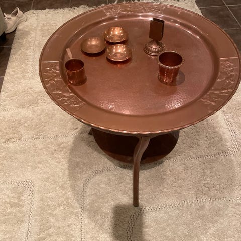 Røkebord med diverse kobbergjenstander selges
