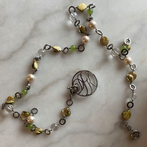 This distinctive party necklace from Dyrberg/Kern features a stunning design with crystals and a mini clock. Weighing 272 grams, it comes complete with the original box, making it a perfect addition to your collection.