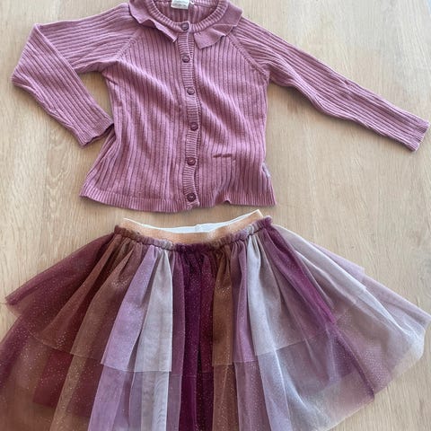 Søtt sett fra Minymo med hjertedetalj. Sleng i buksen. Noen flekker bak på buksen og foran på ene kneet. Tynn jakkegenser som passer til. Den også fra Minymo. Kan sendes mot porto 🤗