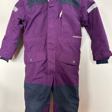 Fin vinterdress som kan justeres lengre etter ønske ved å klippe noen sømmer på innsiden av bukseben og armer. Størrelse 100. Fint brukt, lite bruksmerker.