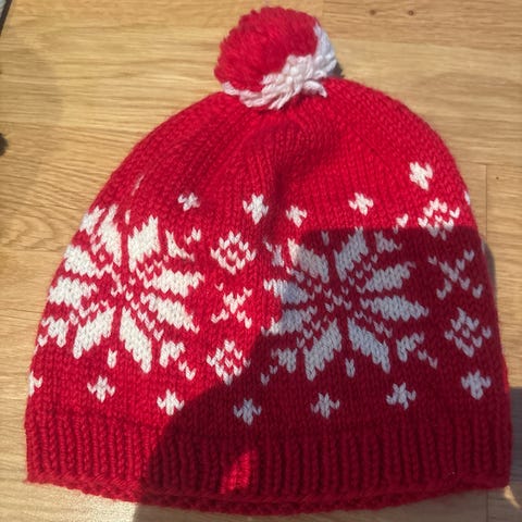Strikket i Drops big merino, farge natur.