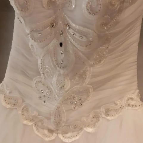 Er noe sminke merker øverst, og slepet er nok litt skittent (er ikke blitt renset)