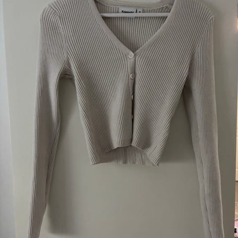 Ny strikket topp/cardigan str.M fra Kappahl, kan brukes begge veier, lappen var tatt vekk, farge lys beige.