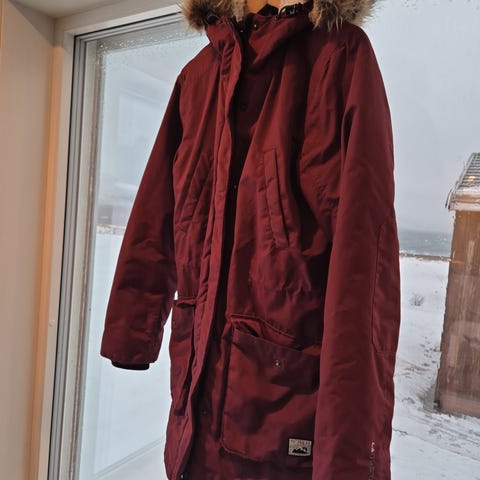 Vinterparkas fra Cubus. Jakken er brukt, men den har også mange gode år igjen. Det er også med en fuskepels som kan kneppes på rundt hetta om man ønsker dette. Lengden er litt over rumpa og ned på lårene.