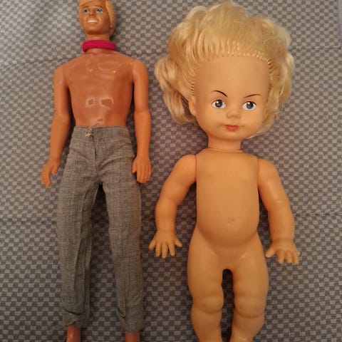 Selger en original Mini Barbie fra 1998. Denne vintage figuren fra Mattel har en blå og rosa bikini. Høyde ca 4,5 cm.