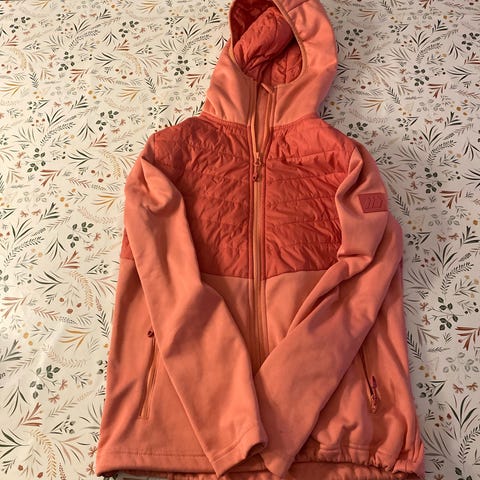 Vår/høst jakke i rosa/oransje farge, 104cm rundt brystet, lengde 62cm