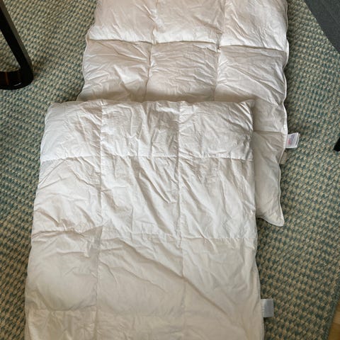 Selger denne da baby har vokst ut av den nå. Begge sider kan brukes: enten med dyrmønster eller grå. Kan lukkes med snor.