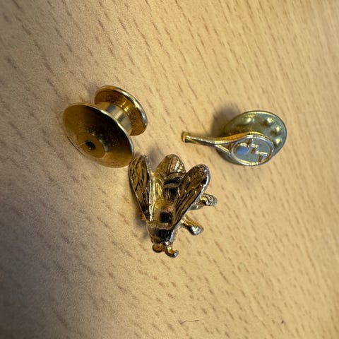 Smykke som kan festes på f.eks klær, vesker osv. Ganske solid.