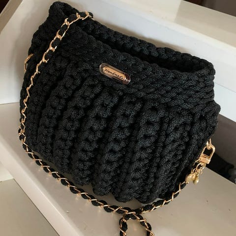 Lite brukt veske, farge sort, med håndtak i tre, samt skulderrem. Størrelse 40x35 cm.