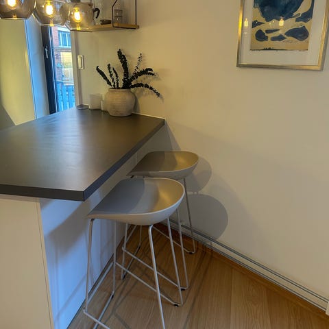 2 stk barstoler fra Kave Home. Kjøpt på Ellos.no. Så gode som nye. Selges pga. flytting. Sittehøyde 75cm. Se siste bilde for øvrige mål. Må hentes.