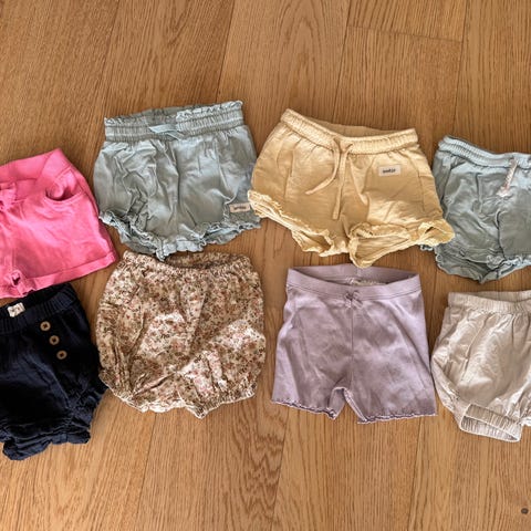 Søt liten grå shorts / bloomer med sløyfe fra Patachou, str. 80. Foret og myk i stoffet, med trykkknapper i sida.