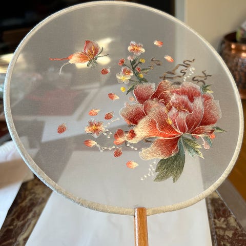 Brukt i vinduet til solskjerm for plante.Laget i stoff. Dekorert med blondekant øverst. Ca 27 cm høy. Ring nederst å henge opp. I orden.