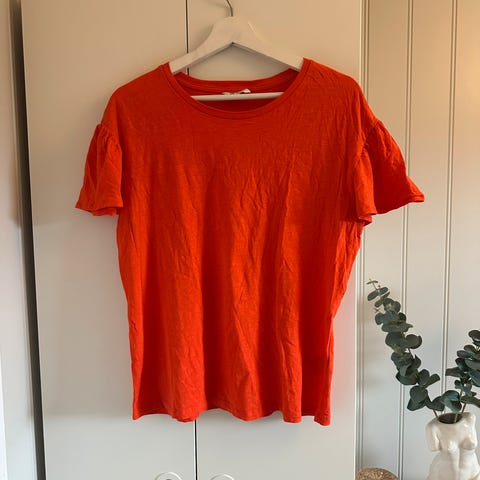 Med rund hals og sommerfuglermer. 100% bomull. Mykt stoff. Ingen bruksmerker.