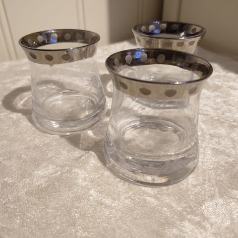 Høyde ca. 8 cm og diameter oppe ca. 7,5 cm.