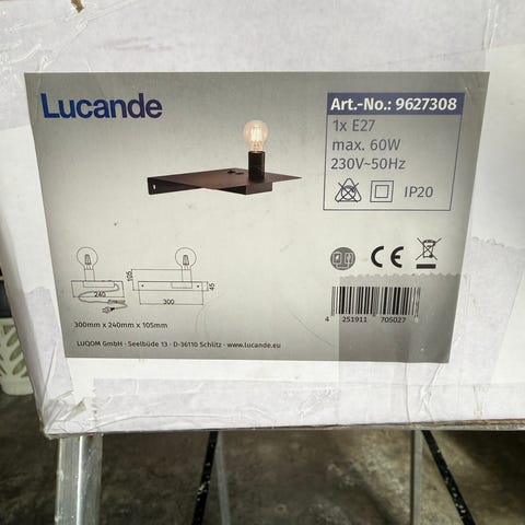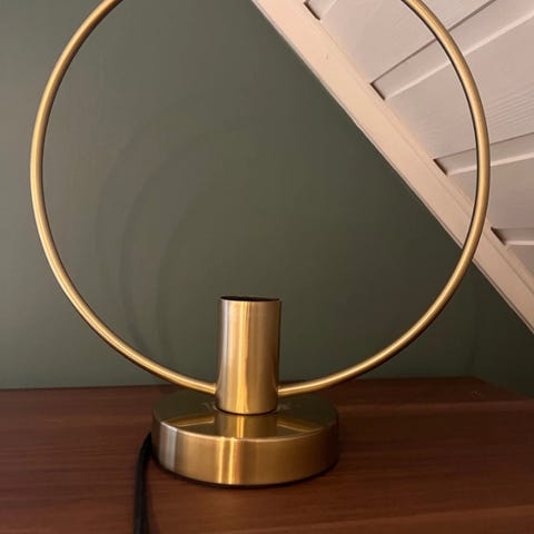 Selges en lampe, lyser rødt. Skaper koselig stemning.