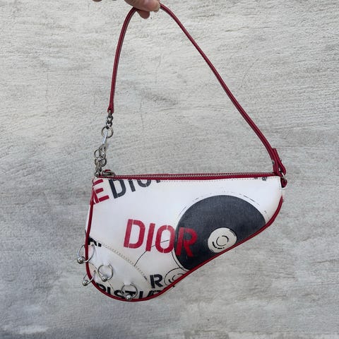 Superkul Dior Saddle bag i denim, lær og gull hardware selges. Flott vintage 2001 designet av John Galliano. Pent brukt.