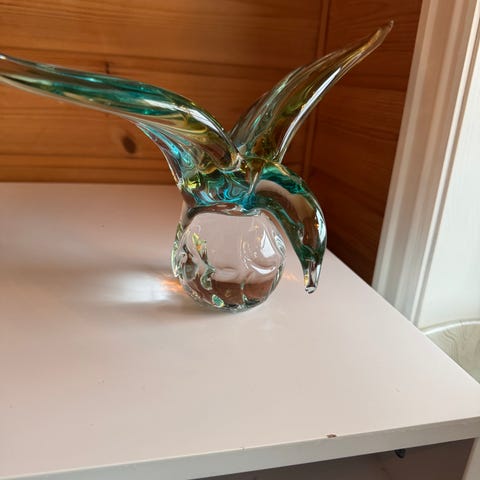 Ca 10 cm høy og ca 13 cm i bredden (fra halen). Kan sendes